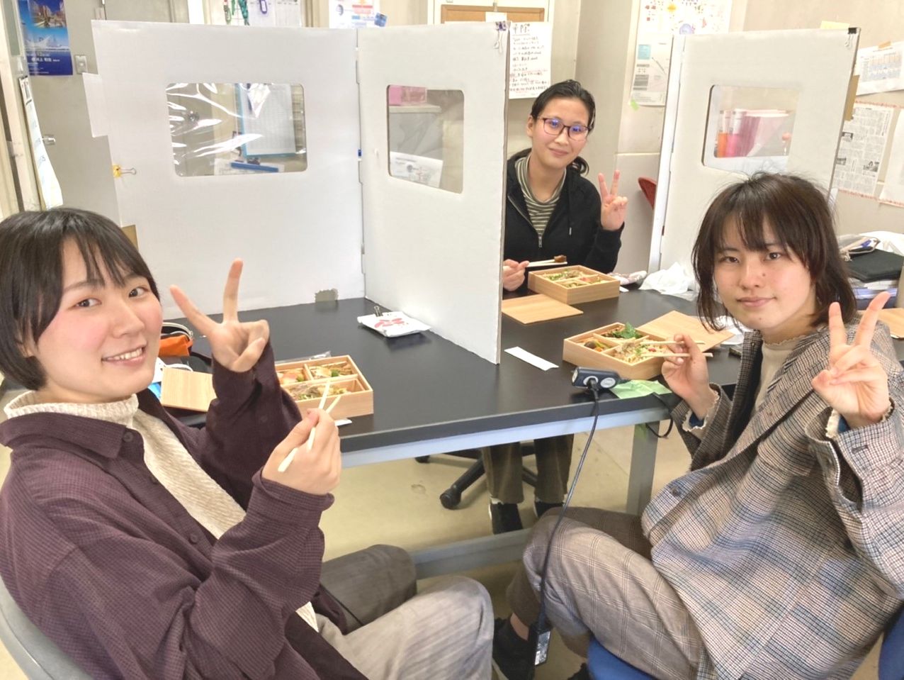 今日は研究室初日ということで、安全性研究室のみんなでお弁当を食べます。いただきます!