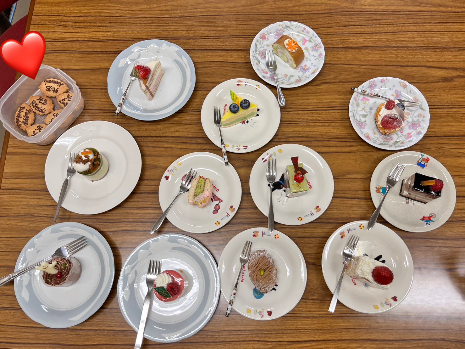 写真右上のお誕生日メッセージクッキーは、なんと誕生日係の学生のお手製なんです!感動!!