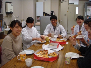 その分、実験後にはみんなで息抜きします。お菓子を食べたりお茶をしたり・・・。